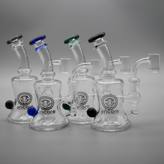 Encore dab rigs are built for concentrate use, so they’re smaller, more controlled, and designed to keep flavor sharp. While you can use a beaker bong, straight bong, or heavy pounder for dabs, a true dab rig gives better airflow and heat retention, especially when paired with a quartz banger, carb cap, and even accessories like beads & inserts.